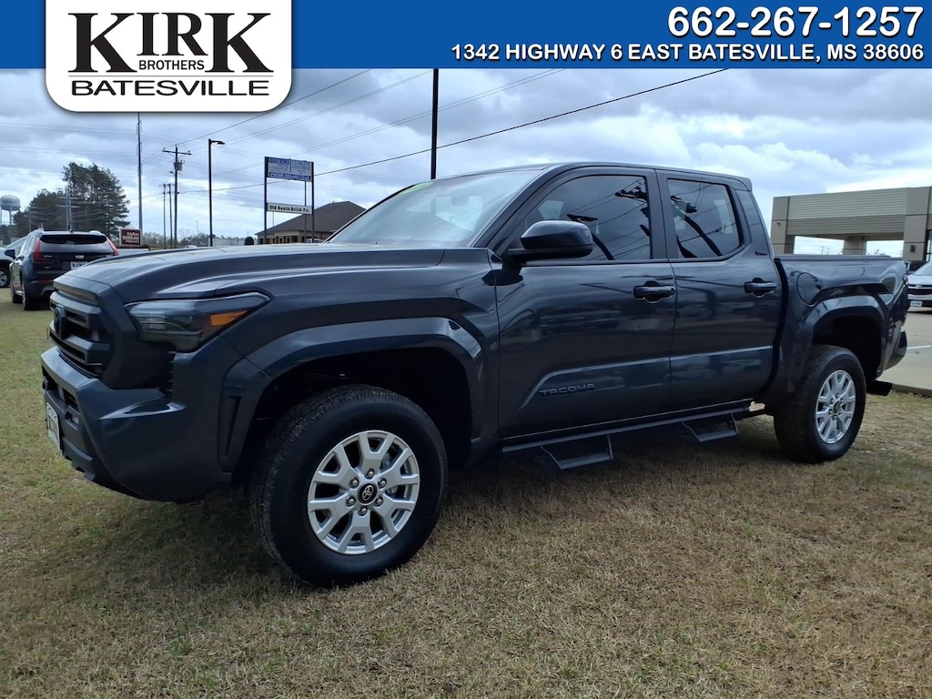 Discover the exceptional value of this 2025 Toyota Tacoma SR5 4WD, now available in Batesville, MS. With only 9,457 miles, this Toyota Tacoma delivers low-mileage peace of mind and the capability you expect from Toyota's legendary mid-size truck. Powered by a fuel-efficient 2.4L 4-cylinder gasoline engine and equipped with four-wheel drive, this Toyota Tacoma is ready for daily commutes, weekend adventures, and everything in between. This Toyota Tacoma SR5 comes loaded with modern tech and convenience features, including Android Auto for seamless smartphone integration, Hands-Free Bluetooth for safe calling and streaming, and a Back-Up Camera to assist with parking and maneuvering. Remote Start adds comfort and convenience on chilly or hot mornings, while the AutoCheck 1-Owner history gives added confidence in the vehicle's care and condition. Priced to sell, this Toyota Tacoma offers the best price in the area for similar models, making it an outstanding value for a virtually new truck with low mileage. Whether you're seeking a dependable work companion or a versatile off-road-capable vehicle, this Toyota Tacoma checks all the boxes. Located in Batesville, MS, this 2025 Toyota Tacoma SR5 4WD is priced competitively and won't last long. Contact us today to schedule a test drive and secure the best-priced, low-mileage Toyota Tacoma in Mississippi.